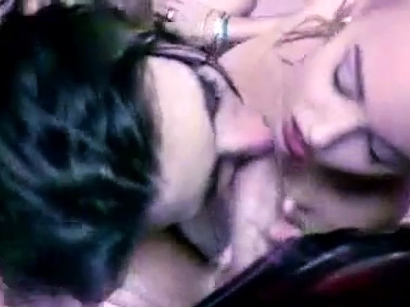 Dude fucks two crazy chicks in public bathroom