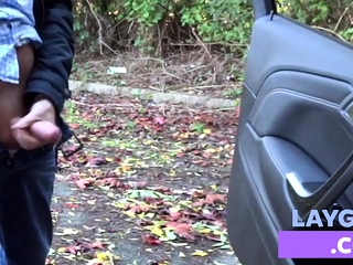 Lustful redhead with a sexy slim body wildly bounces on a big black cock outside