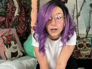 Busty curly brunette with big boobs fucks on couch