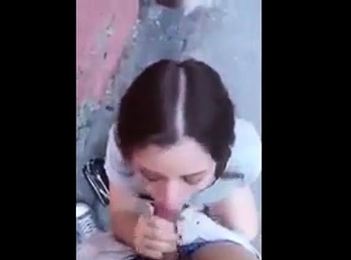 Slutty college chick sucks cock balls deep in alley
