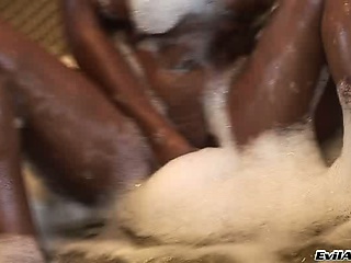 Two luscious squirters fight over this lucky hunk's massive love rod