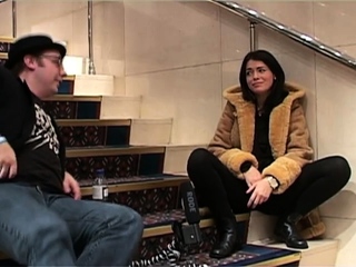Busty brunette foot fetish and footjob in nylons