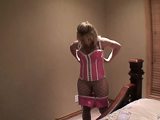 Brooke Haven changes into her pink lingerie to shoot the group scene