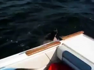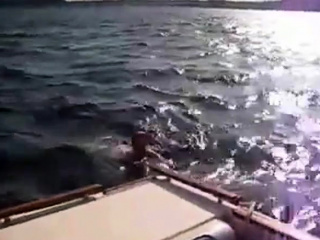 chubby woman takes a load on a boat