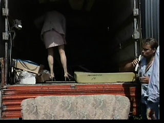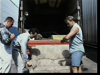 Busty redheaded MILF gets her cumhole exploited by three hunky workers