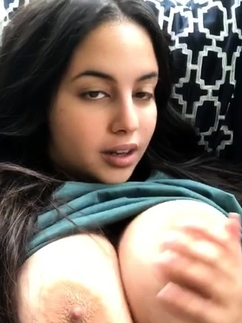 Busty curly brunette with big boobs fucks on couch