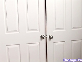 After a normal massage, the brunette babe gets undressed and does what this guy really paid for