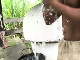 Hung black slave fucks his white owner's tight butt hole outside