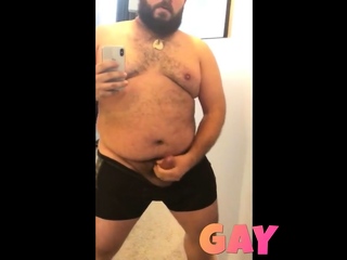 thick daddy bear in jock strap jerking his thick cock
