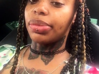 Wet tattooed raven babe Sahron with big boobs masturbates