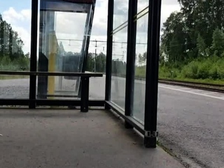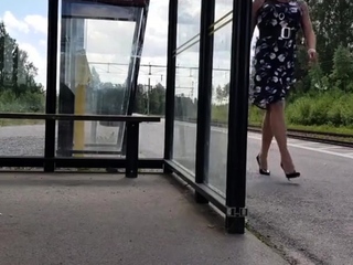 HannaTransa Chastity Crossdresser outdoors at train station.