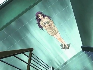 Red haired anime babe gets filled by two big cocks on a rooftop