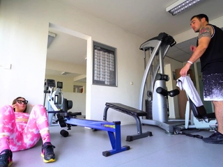 FUCK ME IN THE GYM PLEASE! Young Italian squirting on a