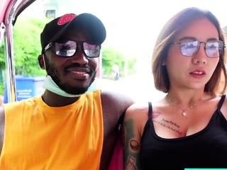 Busty Thai MILF picked up for a dirty interracial threesome